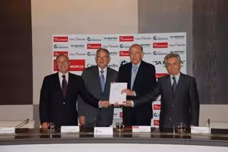 Los presidentes de Cajamurcia, CajaGranada, Caixa Penedès y Sa Nostra han firmado hoy en Madrid, en la sede de la Confederación Española de Cajas de Ahorros (CECA), el contrato por el que las cuatro entidades constituyen el Sistema de Institucional de Protección (SIP), que prevé incrementar un 30 por ciento los resultados globales en cinco años, hasta más de 600 millones de euros.