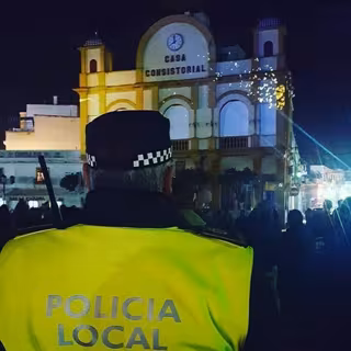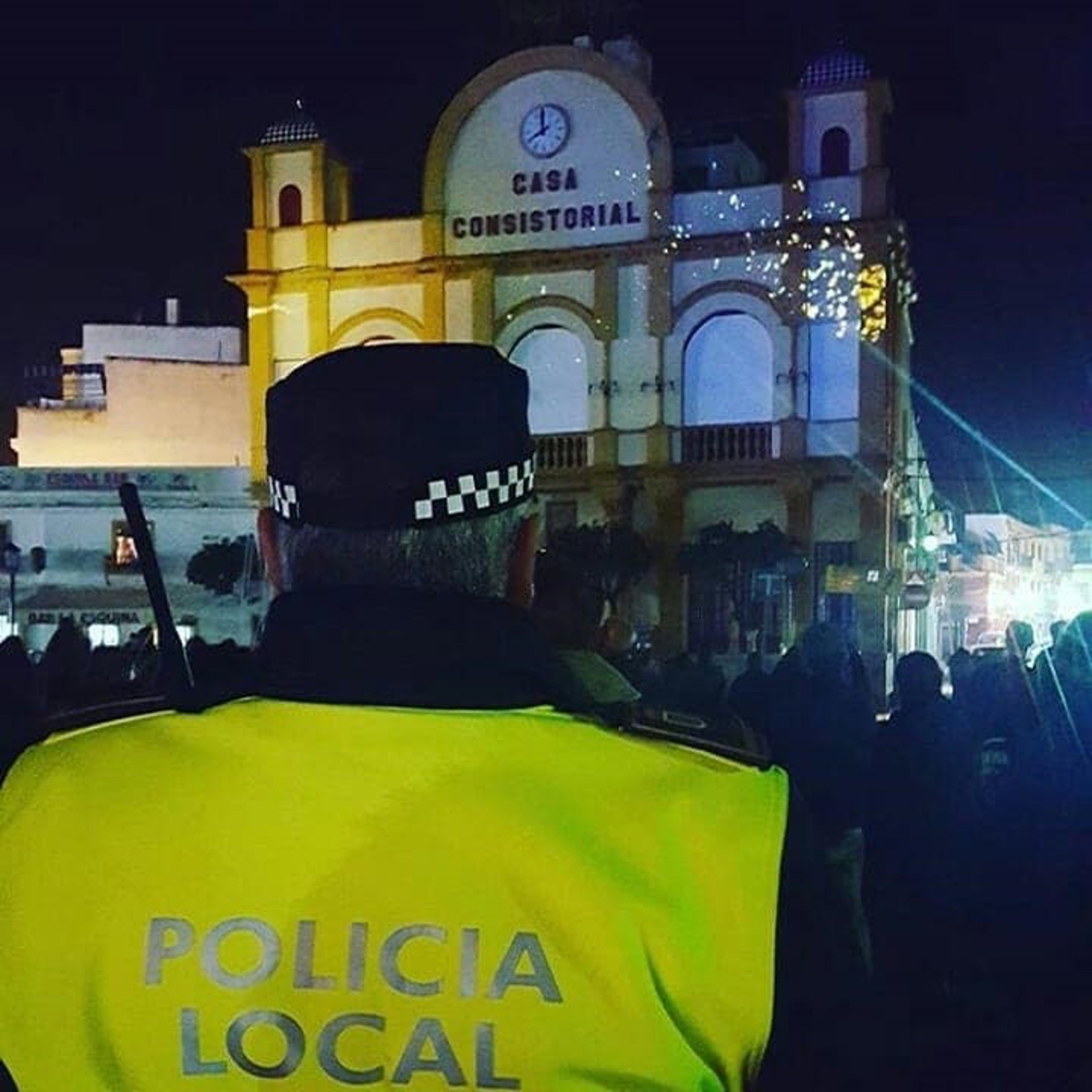 Un agente de la Policía Local de Camas ante la antigua sede del Ayuntamiento - CAMAS