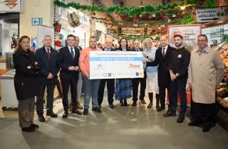 La Fundación "la Caixa", a través de CaixaBank, la Federación de Mercados de Abastos de Sevilla y el Ayuntamiento de Sevilla, con la colaboración de distintas hermandades y parroquias de la capital, han presentado este miércoles en el Mercado de Pino Montano la iniciativa 'La compra con corazón de esta Navidad', gracias a la cual más de 1.400 familias vulnerables sevillanas podrán contar con bonos que podrán utilizar en la plaza de abastos de sus respectivos barrios y con los que podrán adquirir los productos frescos que llevar a sus mesas en estos días de fiesta.