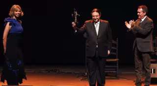 El cantaor Antonio González 'El Raya' ha recibido en el Teatro de la Maestranza de Sevilla un homenaje por sus 50 años como profesional, que contó con la periodista Marina Bernal como presentadora, y en el transcurso del cual el alcalde de Sevilla, Juan Espadas, le ha entregado el 'Giraldillo' en nombre del Ayuntamiento.