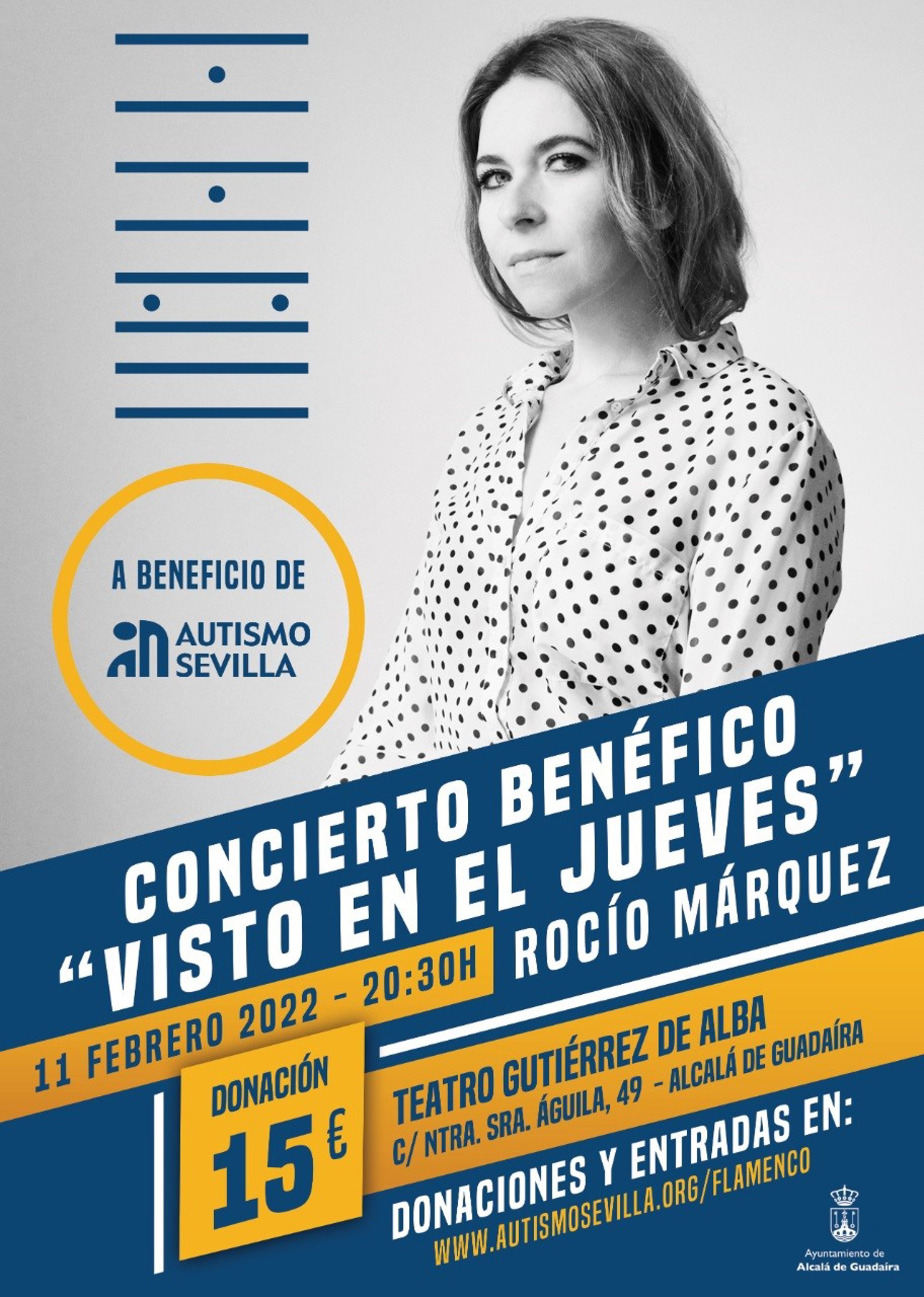 La cantaora onubense Rocío Márquez ofrece un concierto benéfico el próximo 11 de febrero en el Teatro Gutiérrez de Alba, en el municipio de Alcalá de Guadaíra (Sevilla), cuya recaudación irá destinada a la Asociación Autismo Sevilla.