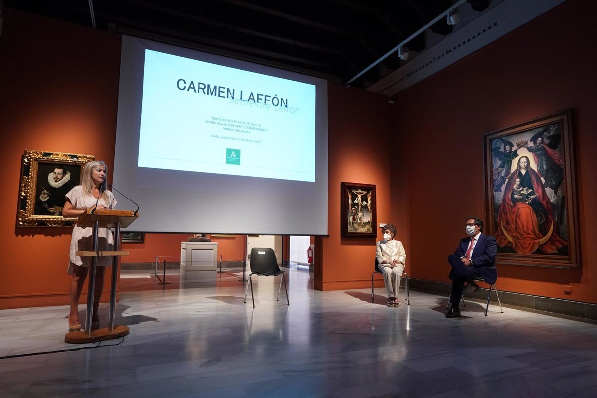 La consejera ha asegurado, según una nota de prensa, que "el Museo de Bellas Artes de Sevilla y el Centro Andaluz de Arte Contemporáneo, dos de los centros artísticos más importantes de nuestra tierra, comparten al fin un proyecto común. Y no podía haber nadie mejor que Carmen Laffón, Hija Predilecta de Andalucía, cuya obra respira cómoda entre los grandes maestros de la escuela sevillana y despunta viva rodeada de las últimas tendencias del arte".