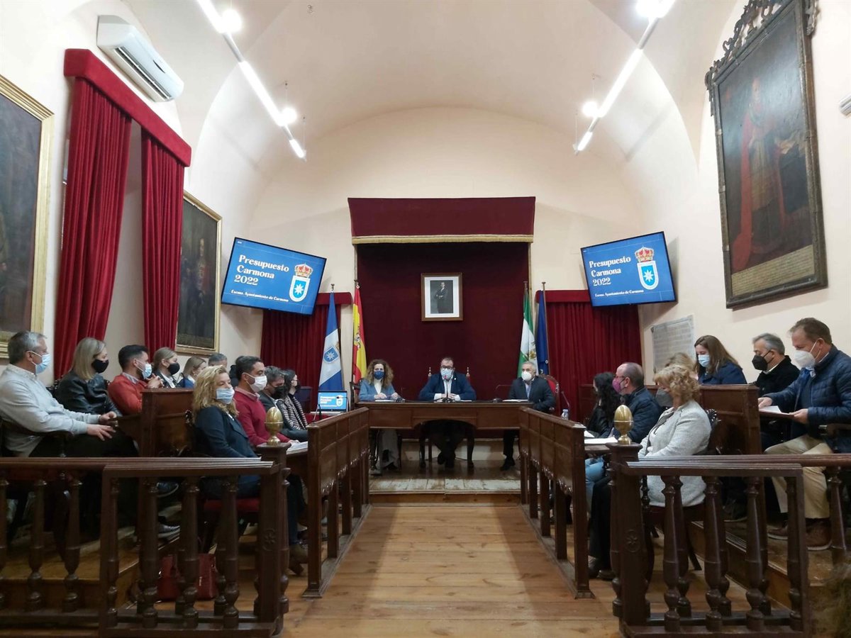 El Ayuntamiento de Carmona (Sevilla) ha aprobado este jueves, con los votos a favor de los grupos municipales del PP y del PSOE, y la abstención de IU, el presupuesto municipal para 2022, que supera los 58 millones de euros, "la cifra más alta de la historia de la localidad", y con el que Carmona contará con 19,5 millones para inversiones frente a los cuatro del ejercicio anterior.