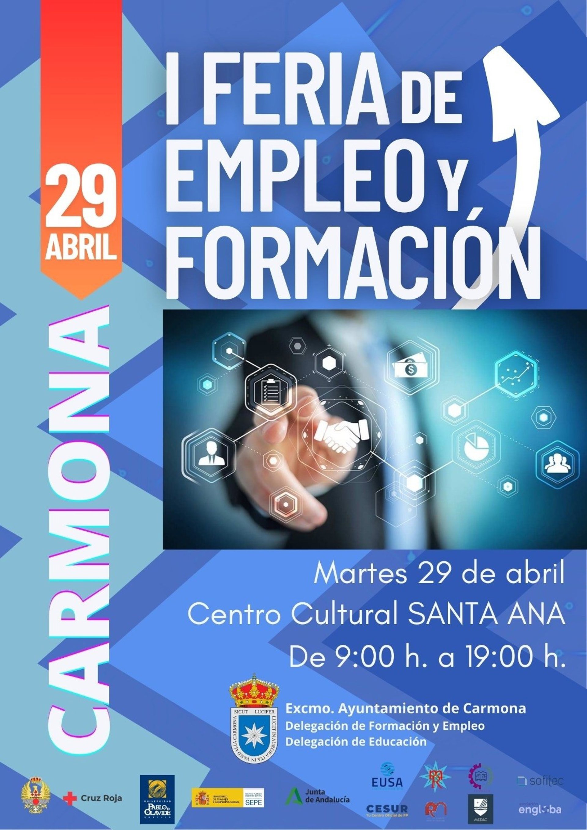 El Ayuntamiento de Carmona (Sevilla), gobernado por Juan Ávila, organizará el próximo 29 de abril en el Centro Cultural "Santa Ana" la I Feria de Empleo y Formación de la localidad .