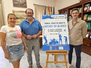 La iniciativa ha sido presentada este viernes por el alcalde de Carmona, Juan Ávila, y los delegados municipales de Comercio, Angélica Alonso, y el de Juventud, Rafael Serrano, que han valorado "de manera muy positiva este ciclo de conciertos que ofrece una alternativa de ocio a los jóvenes así como el apoyo al comercio y la hostelería de la zona".