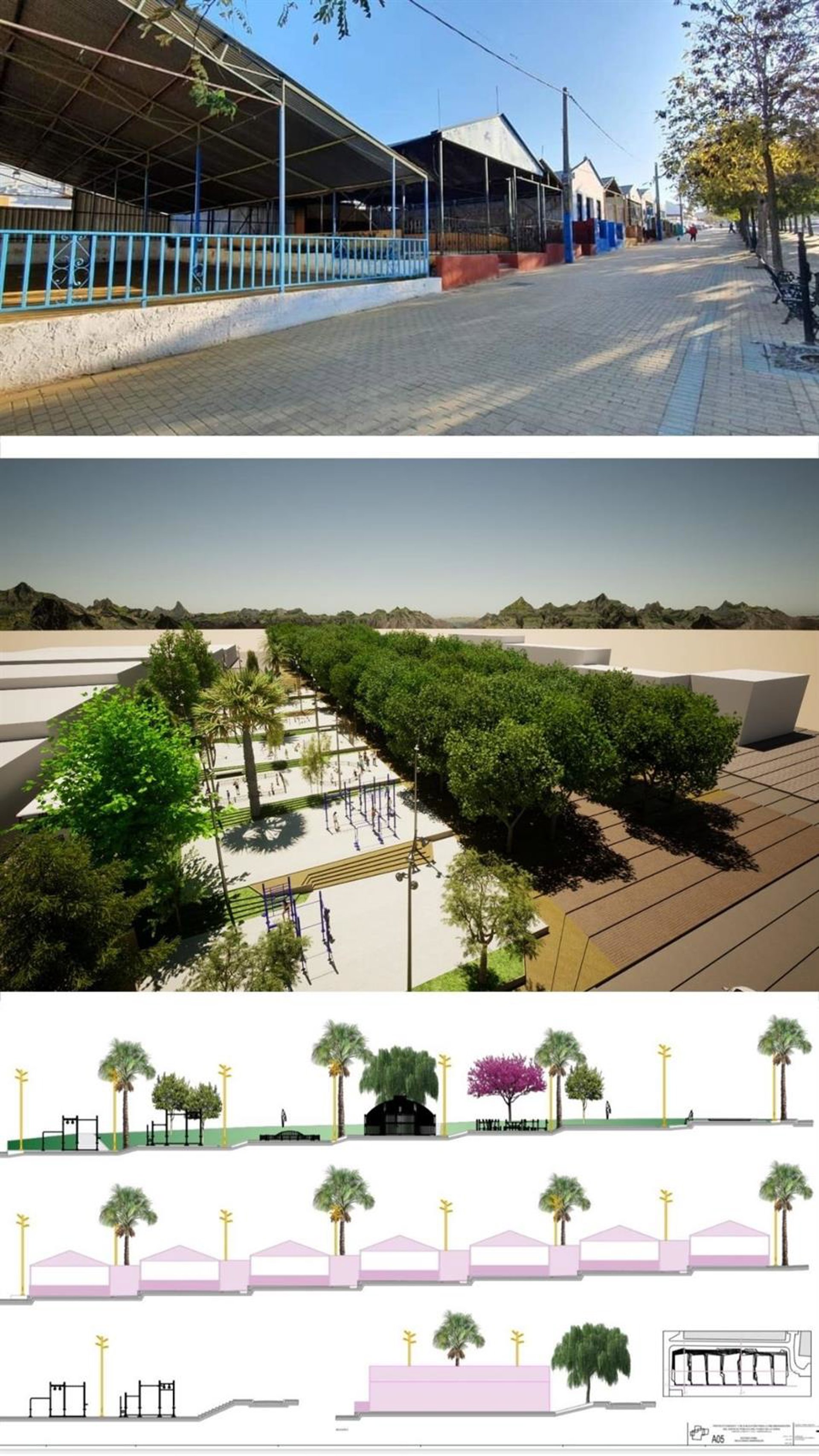 En la imagen, el estado actual del Paseo de la Feria y cómo quedará tras la intervención acordada entre el Ayuntamiento y las partes implicadas. - AYUNTAMIENTO DE CARMONA