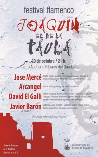 Alcalá se viste de gala para celebrar el 20 de octubre, a partir de las 21,00 horas, el XXXVIII Festival Flamenco Joaquín el de la Paula y lo hace con figuras de la talla de José Mercé, Arcángel, David el Galli y el gran bailaor alcalareño Javier Barón. Asimismo, la presentación correrá a cargo del conocido periodista Alberto García Reyes.