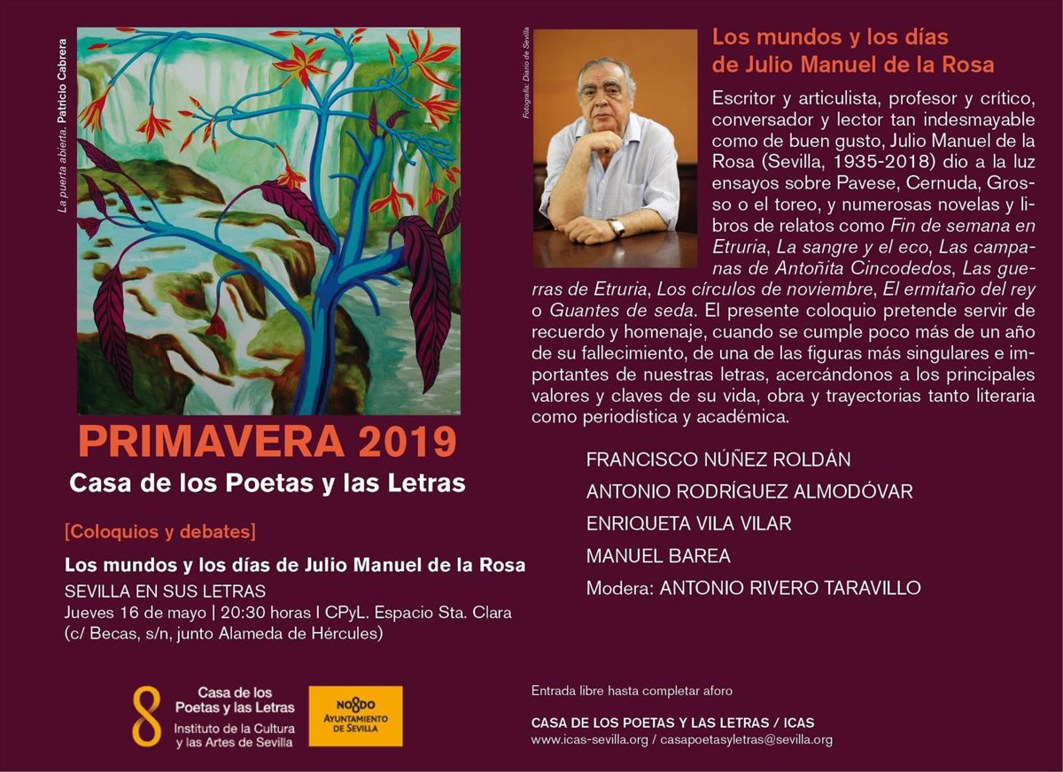 La Casa de los Poetas y las Letras arranca su curso primaveral con el coloquio 'Los mundos y los días de Julio Manuel de la Rosa' este jueves, 16 de mayo, a las 20,30 horas en el Espacio Santa Clara.