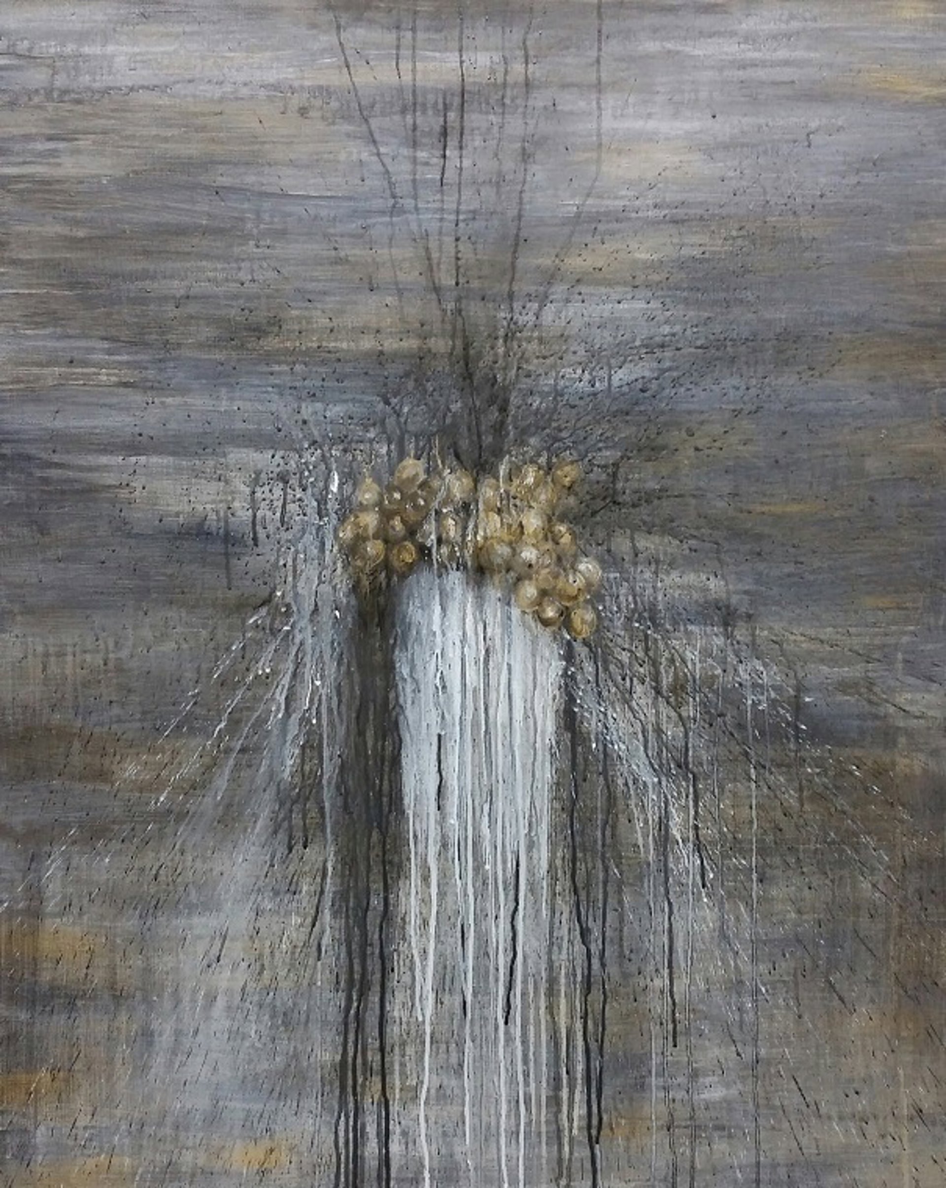 Así, en 'Vanitas' tienen cabida objetos personales (las gafas, el reloj, la pipa, el cuaderno) de De Cózar, quien perdió la vida el 12 de diciembre de 2014 intentando salvar de las llamas su biblioteca de más de 9.000 volúmenes. Desde este punto de partida, María Jesús Casermeiro también reflexiona en la muestra sobre la destrucción de los símbolos culturales ante el paso demoledor de la acción humana y de la naturaleza.
