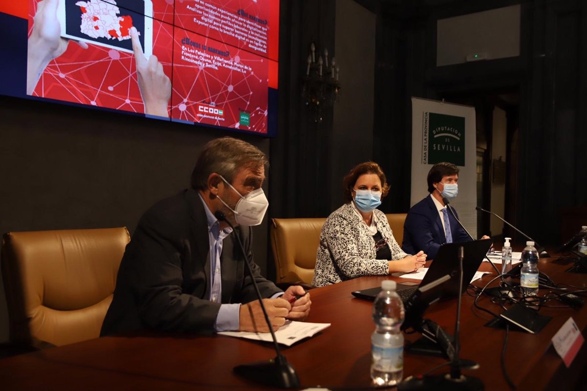 La Unión Provincial de Comisiones Obreras (CCOO) de Sevilla ha clausurado este jueves el ciclo de jornadas, con la colaboración de la Diputación de Sevilla, con las que el sindicato ha analizado los retos, oportunidades y dificultades de este fenómeno, tanto en el plano laboral como en las relaciones con la administración local, por las distintas comarcas de la provincia y en un contexto de pandemia sanitaria.