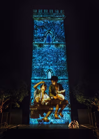 En el afán por jugar con ellos, se podrán imaginar a estos 'Niños de Murillo' trepando por los muros del Casino de la Exposición, asomándose a sus ventanas, escondiéndose entre sus piedras o jugando con sus tamaños, siendo un juego visual centrado sus propias figuras y movimientos, proyectándolos sobre las paredes de este espacio patrimonial sevillano.