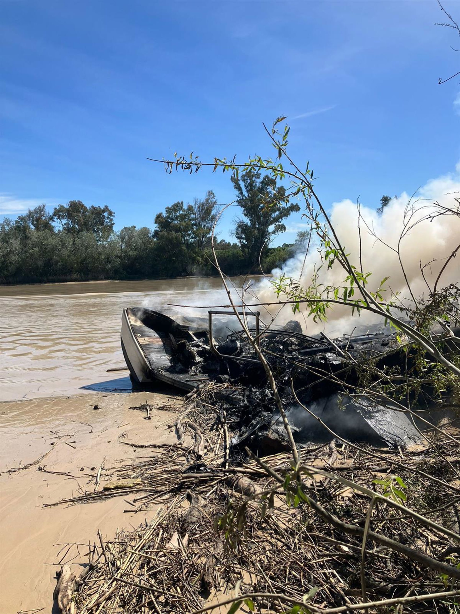 Las llamas han devorado la embarcación por completo, encontrándose ésta en situación de semihundida. Los bomberos han trabajado también tratando que el fuego no saltase a suelo firme y se aproximase a un pajar próximo.