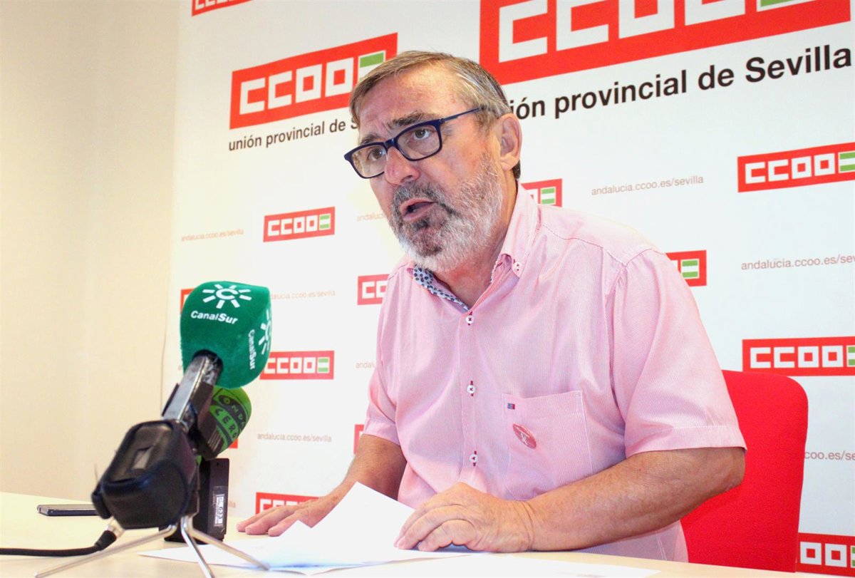 El secretario general de CCOO de Sevilla, Alfonso Vidán, ha celebrado este viernes una rueda de prensa en torno a la evolución de la situación socio laboral de la provincia, ahora de que se cumplen diez años de la quiebra de la empresa estadounidense de servicios financieros Lehman Brothers, cuya caída se considera como el comienzo oficial de la pertinaz crisis económica.