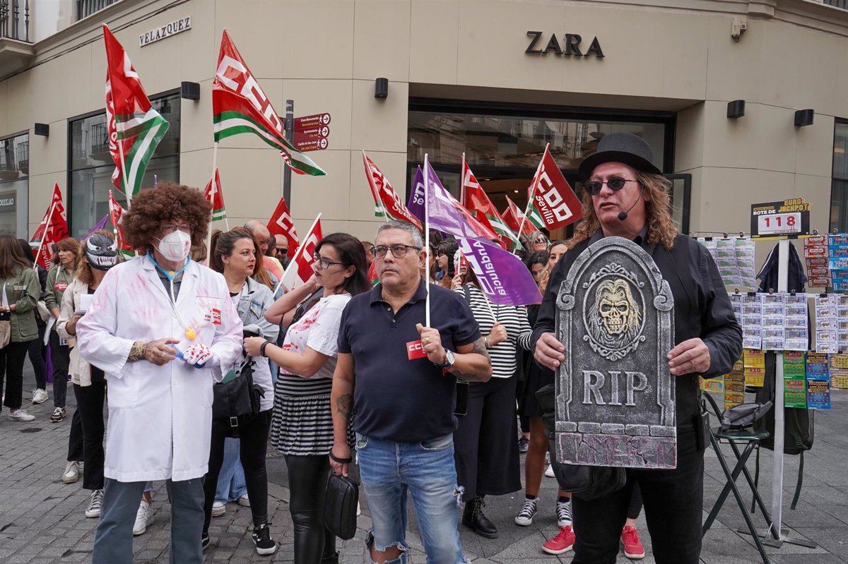 Mediante un pasacalles que, con motivo de Halloween, ha simulado el entierro del convenio y ha criticao el bloqueo de Aprocom al convenio colectivo, delegadas y delegados de CCOO se han manifestado desde las 10 horas por calles del centro de la capital como Tetuán, Velázquez, Sierpes o Puente y Pellón, para finalizar en las Setas de la Encarnación sobre las 12,30 horas, según destaca el sindicato en una nota de prensa.