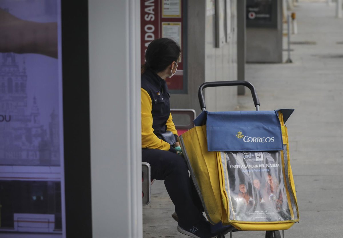 Archivo - Una trabajadora de correos en una parada de autobús. - María José López - Europa Press - Archivo