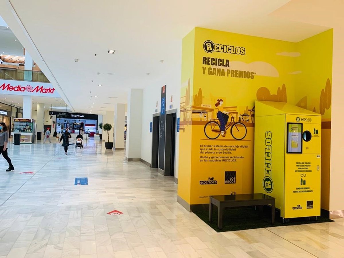El centro comercial Los Arcos, en Sevilla, se ha convertido en el primero de España en contar con máquinas de Reciclos, un sistema de devolución y recompensa (SDR) de Ecoembes a través del cual los usuarios reciben puntos con los que ayudar a mejorar su entorno más cercano, haciéndolo más sostenible y contribuyendo con entidades sociales como el Banco de Alimentos de Sevilla.