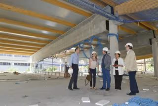 El delegado de Deportes del Ayuntamiento de Sevilla, David Guevara, y la delegada del Distrito Triana, Carmen Castreño, han visitado las obras del Centro Deportivo Supera Guadalquivir, que se ubica en la calle Mar del Plata de forma anexa al polideportivo Mar del Plata y que finalizarán en 2016.