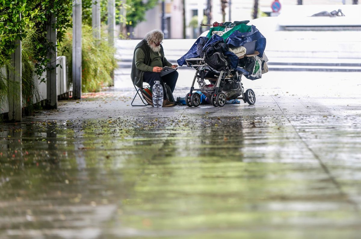 Archivo - Una persona sin hogar en el centro de Sevilla. - Eduardo Briones - Europa Press - Archivo