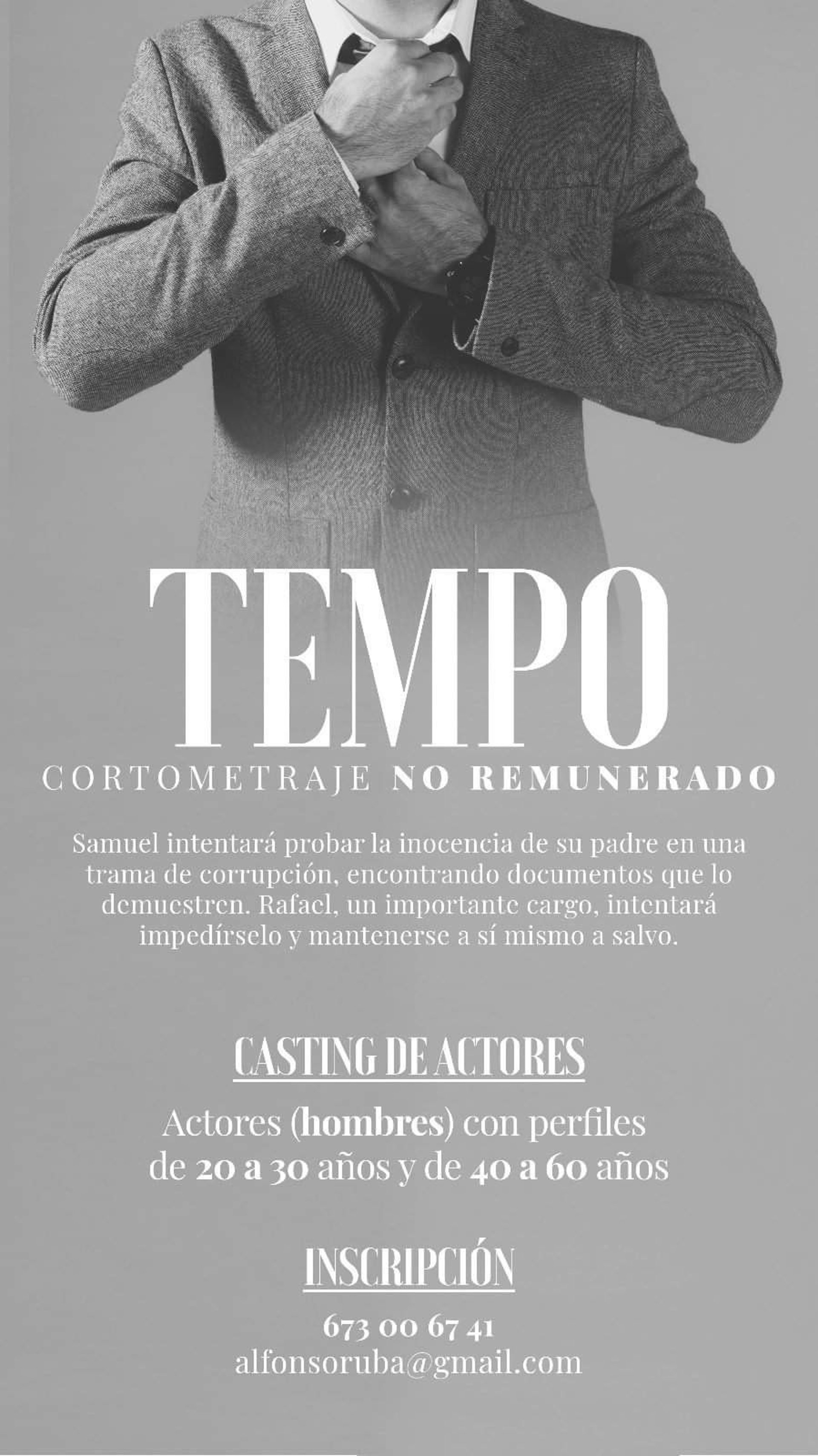 Para acceder a este casting no remunerado, hay que contactar con el teléfono 673 006 471 o a través del correo electrónico alfonsoruba@gmail.com.