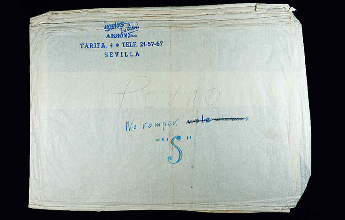 Gran parte de su obra todavía permanecía en poder de la familia, que se mostró dispuesta a que fuera exhibida. La familia habló sobre una "carpeta prohibida". Un sobre con el título de 'S Porno, no romper', conservaba dibujos de carácter y consumo privado en los archivos de la familia. El rótulo pareció "tan sugerente" a la organización, que lo han querido conservar como título de la muestra. Manuel Echegoyán quería que se protegieran, que no se rompieran, porque "en algún momento llegaría aquel día en que su secreto perdiese ese temor a la incomprensión".