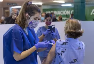 Archivo - Una sanitaria vacuna a una mujer en el Estadio de La Cartuja de Sevilla - María José López - Europa Press - Archivo