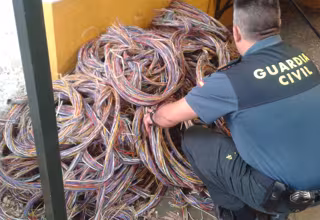 La Guardia Civil ha detenido a cinco individuos de origen rumano y vecinos de diferentes localidades de Sevilla por el robo de 2.400 metros de cable de cobre de un tendido telefónico en una urbanización de El Castillo de las Guardas que causó daños por valor de 14.000 euros y dejó incomunicados a vecinos de las pedanías de Arrollo de la Plata y Santa Isabel.