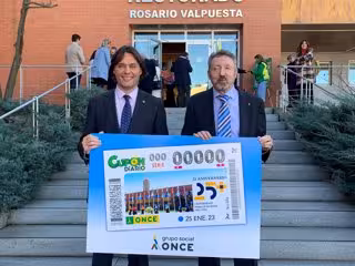 El rector de la Universidad Pablo de Olavide (UPO), Francisco Oliva, y el delegado territorial de la ONCE en Andalucía, Ceuta y Melilla, Cristóbal Martínez, han presentado este jueves la imagen del cupón que se sorteará el próximo 25 enero y que está dedicado al XXV Aniversario de la institución académica. De esta forma, cinco millones de cupones que están ya a la venta llevarán como motivo la plaza principal de la Universidad y el logo de su efeméride en la fecha en que se celebra cada año el Día de la UPO.