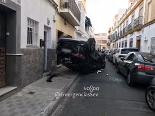 La Policía Local de Sevilla investiga un accidente en el que un coche ha perdido el control y ha volcado en medio de la calle Sebastián Gómez de la capital andaluza, junto a Carretera de Carmona.