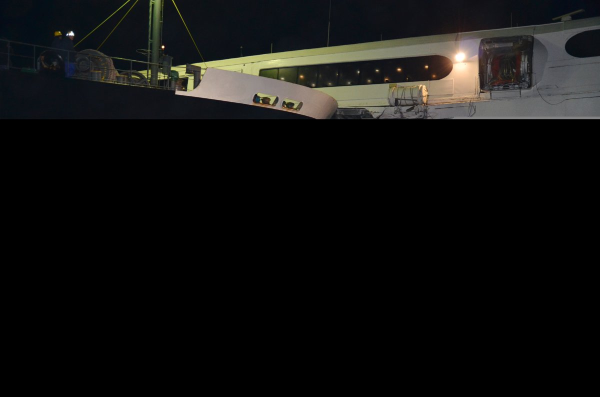 Las naves no habrían sufrido vías de agua en sus respectivos cascos, si bien en estos momentos permanecen aprisionadas la una contra la otra a cuenta de la colisión. Según el servicio unificado de emergencias 112, ya habría comenzado la evacuación del pasaje y la tripulación de las naves.