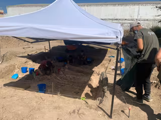 Gracias a un proceso de colaboración entre el Ayuntamiento de La Algaba (Sevilla), gobernado por Diego Manuel Agüera (PSOE), y la Asociación Comarcal Pro Memoria Democrática Vega Media del Guadalquivir, este jueves han comenzado los trabajos de exhumación de la fosa común situada en el cementerio viejo de esta localidad sevillana, donde los expertos calculan que se hallan los restos de 144 presos políticos fallecidos en el campo de concentración de Las Arenas.