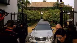 Así, alrededor de las 13,30 horas ha salido el coche fúnebre del Palacio de las Dueñas, seguido de una comitiva de varios vehículos de alta gama, a cuyas puertas se han congregado alrededor de 300 personas --entre ellas numerosos periodistas--, que han arrojado flores al vehículo entre aplausos y palabras de halago a la Duquesa.