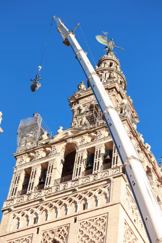 Los grupos escultóricos se instalarán de forma provisional en el patio de los Naranjos de la Catedral en unos útiles realizados al efecto, tal como ha informado el Cabildo Catedral en su cuenta de la red social X consultada por Europa Press. Posteriormente, se realizará un estudio metalográfico de los materiales que los componen y la evaluación de su estado de conservación, tanto de la eolípida y el vástago, diseñados por Hernán Ruiz y fundidos por Bartolomé Morel, los mismos que ejecutaron el Giraldillo (1568), como de los ramos de azucenas, las asas y los cuerpos del cuello superior.