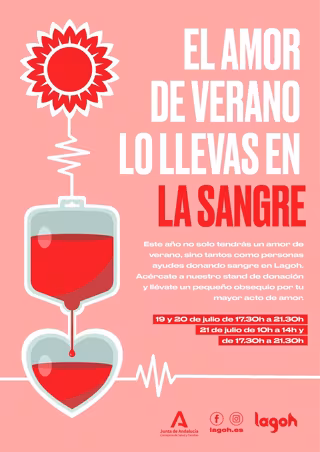 Lagoh ha informado en una nota de prensa que "desde el centro comercial, animamos a todas las personas que visiten Lagoh a participar en esta campaña de donación de sangre", que tendrá lugar durante los días 19, 20 y 21 de julio en el expositor de donación que se instalará entre las tiendas H&M y Massimo Dutti. Los días 19 y 20 de julio el horario será de 17,30 a 21,30 horas, y el 21 de julio, de 10,00 a 14,00 horas y de 17,30 a 21,30 horas.