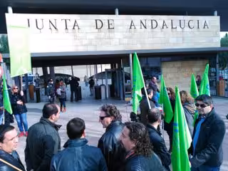 Un centenar de delegados sindicales de UITA y CGT se han concentrado este miércoles a las puertas de la Consejería de Hacienda y Administración Pública de la Junta de Andalucía, en el edificio Torretriana de Sevilla, para reclamar la "igualdad de derechos" para los indefinidos no fijos y temporales de la Agencia de Medio Ambiente y Agua (Amaya), adscrita a la Consejería andaluza de Medio Ambiente y Ordenación del Territorio, tras el informe de Hacienda que les niega cualquier posibilidad de reclasificación profesional por considerarlos personal temporal.