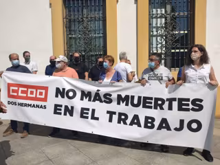 Los aledaños del Ayuntamiento de Dos Hermanas (Sevilla) han acogido este viernes a las 12 horas una concentración con un minuto de silencio, en memoria del trabajador fallecido este pasado miércoles en unas instalaciones industriales de dicha localidad a cuenta de un accidente laboral.