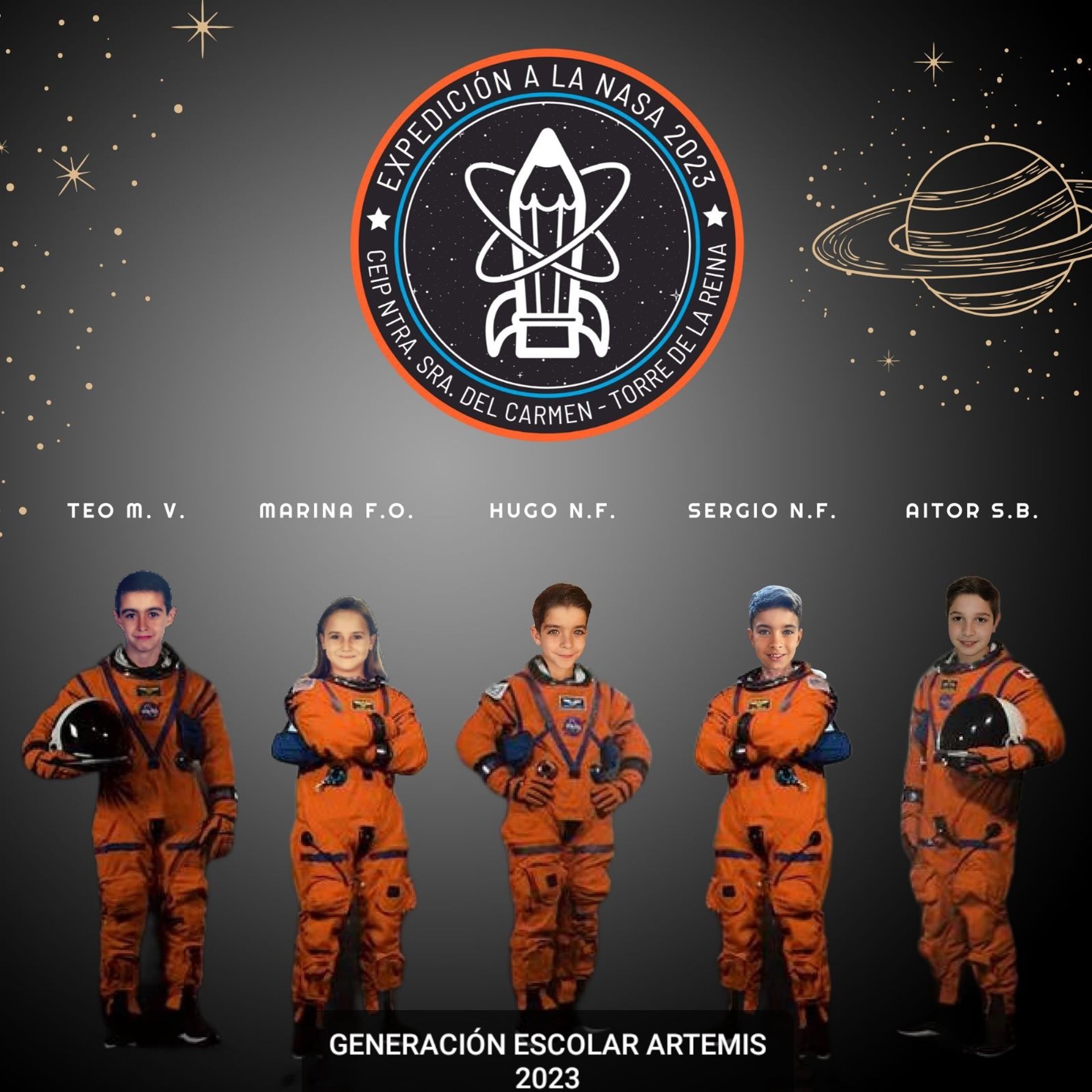 Cartel/montaje de la expedición de escolares de Torre de la Reina a la NASA - H.R.P./CEDIDA