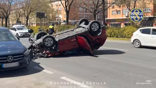 El suceso se ha producido tras una "maniobra evasiva" sobre otro vehículo; como consecuencia, el conductor perdió el control del turismo y terminó chocando contra dos coches estacionados, lo que produjo el vuelco, según informa Emergencias Sevillas en sus redes sociales, consultadas por Europa Press.