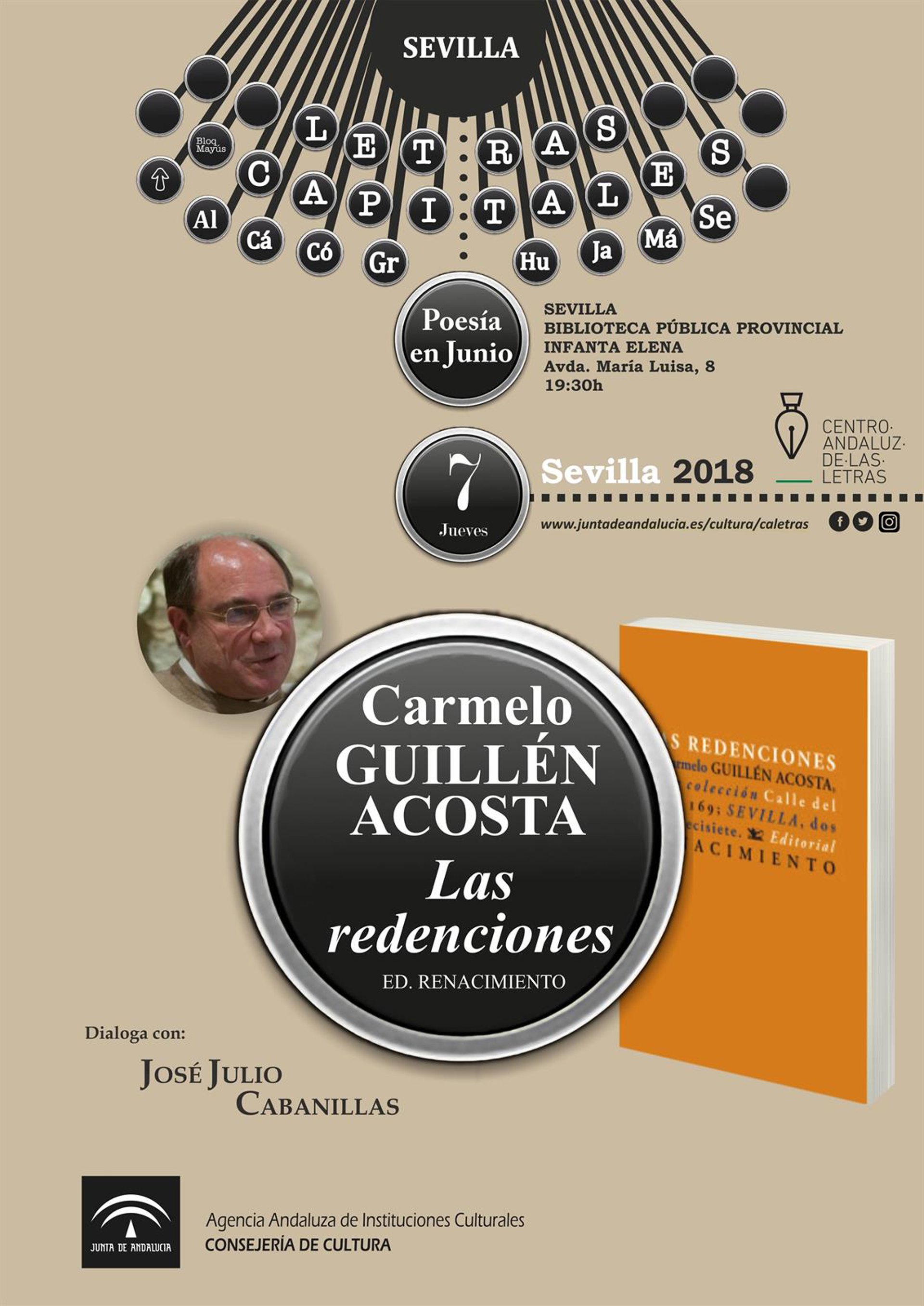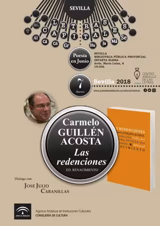 Según un comunicado, este jueves 7 se presentará en la Biblioteca Infanta Elena el nuevo poemario de Carmelo Guillén Acosta 'Las redenciones', publicado por la editorial Renacimiento. La cita literaria estará conducida por el poeta José Julio Cabanillas a partir de las 19,30 horas.