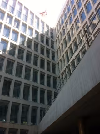 El ancho de la crujía permite disponer en el interior tanto despachos modulares como oficinas abiertas a un lado y otro de una circulación central, de modo que cada planta podrá organizarse de manera flexible en función de las necesidades de los servicios administrativos que albergue. Los pilares del edificio se han desplazado a las fachadas y las alas quedan diáfanas, optimizando el espacio y permitiendo absoluta libertad en la compartimentación.