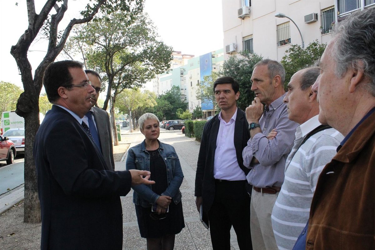El concejal delegado de Seguridad, Movilidad y Fiestas Mayores del Ayuntamiento de Sevilla, Juan Carlos Cabrera (PSOE), y la delegada del Distrito San Pablo-Santa Justa, Inmaculada Acevedo (PSOE), se han reunido con representantes vecinales del entorno de Kansas City para analizar su solicitud de instalación de un nuevo paso de peatones semafórico.