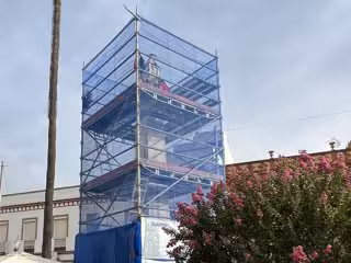 El monumento a la Virgen de Valme, rodeado de andamios para el comienzo de las labores de conservación y mantenimiento. - AYTO.DOS HERMANAS