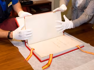 El ejemplar original manuscrito y firmado de la Constitución de 1812 ha salido hoy por primera vez del Archivo del Congreso de los Diputados, donde permanecía conservada bajo grandes medidas de seguridad, para ser trasladado, bajo la custodia de seis agentes de la Policía Nacional, hasta Cádiz, donde la Carta Magna fue firmada hace 200 años.