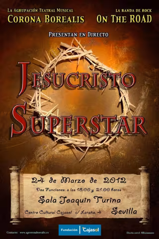 Corona Borealis trae este sábado 24 de marzo a la Sala Joaquín Turina del Centro Cultural Cajasol de Sevilla la obra 'Jesucristo Superstar', una nueva versión de este musical que la agrupación presentará en riguroso directo y con la banda de rock sevillana 'On the road'.