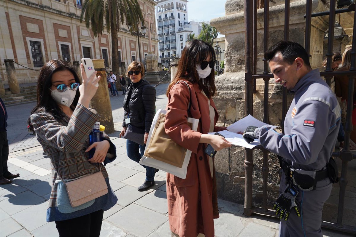 Turistas en las puertas del El Alcázar de Sevilla poco antes del estado de alarma - Eduardo Briones - Europa Press - Archivo