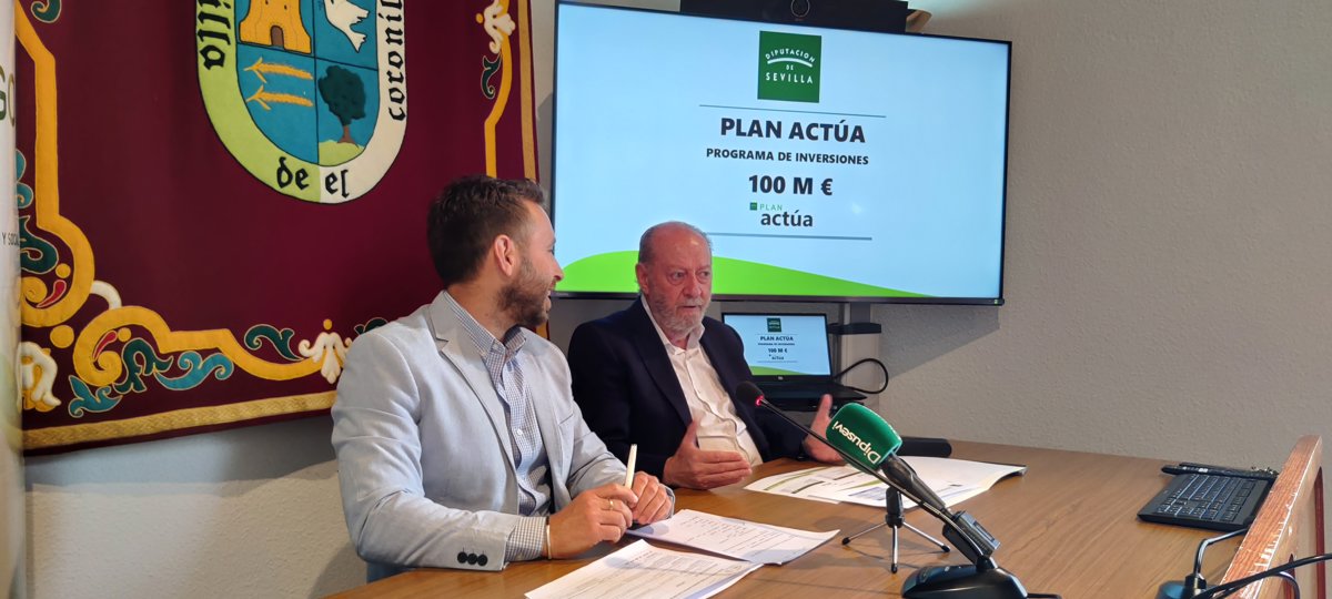 El presidente de la Diputación de Sevilla, Fernando Rodríguez Villalobos, se ha reunido este jueves con el alcalde de El Coronil, José López Ocaña, para analizar las inversiones que se van a poder acometer en los próximos meses gracias al Plan Actúa, que se suma a las cuantías que reciben ya a través del Plan Contigo. Además, se informa sobre los plazos administrativos con los que contarán los ayuntamientos y la coordinación en cuanto a los procedimientos. El pueblo sevillano dispone con ambos planes 1,87 millones de euros para inversiones.