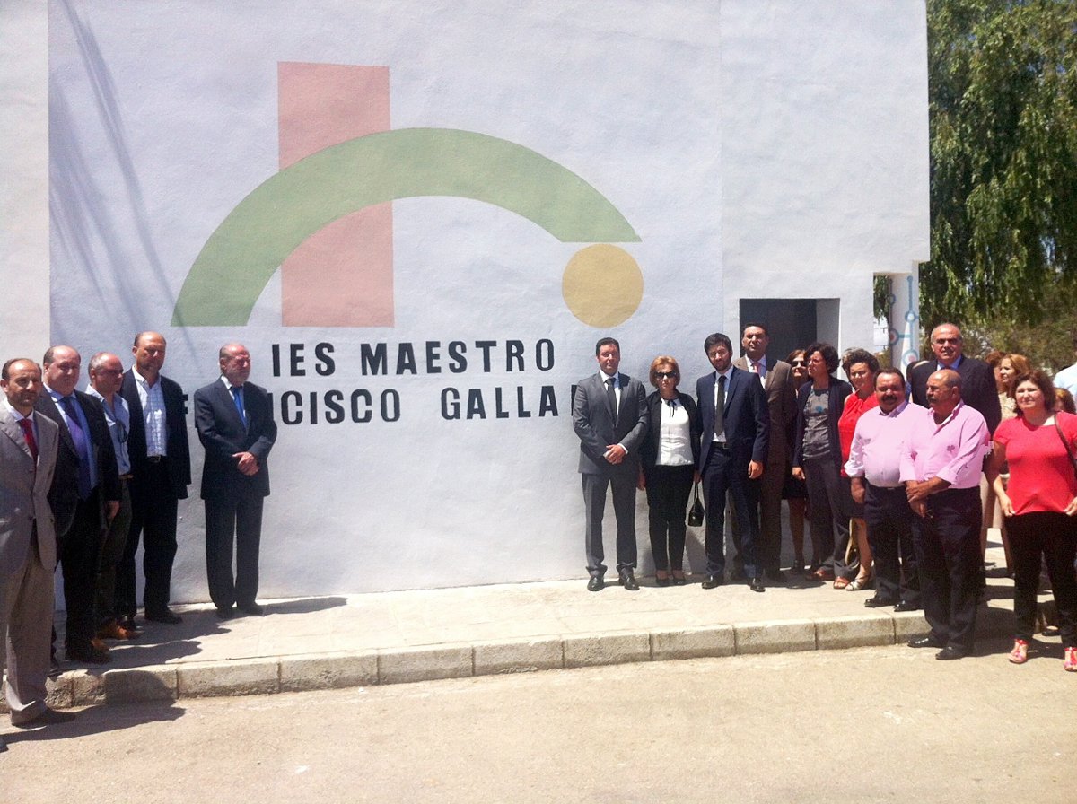 El delegado del Gobierno de la Junta, Javier Fernández, junto con los delegados territoriales de la Junta en Sevilla y el presidente de la Diputación, Fernando Rodríguez Villalobos, ha asistido esta mañana al acto de rotulación del antiguo IES Entrepuentes de Los Corrales, por IES Maestro Francisco Gallardo, en homenaje al fallecido delegado de Agricultura, que fue maestro y alcalde de Los Corrales.
