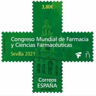 Correos ha emitido un sello con motivo de la celebración en Sevilla el próximo año 2021 --del 12 al 16 de septiembre-- del Congreso Mundial de Farmacia y Ciencias Farmacéuticas, que se ha aplazado un año respecto a la fecha inicialmente prevista por la pandemia de la Covid-19.
