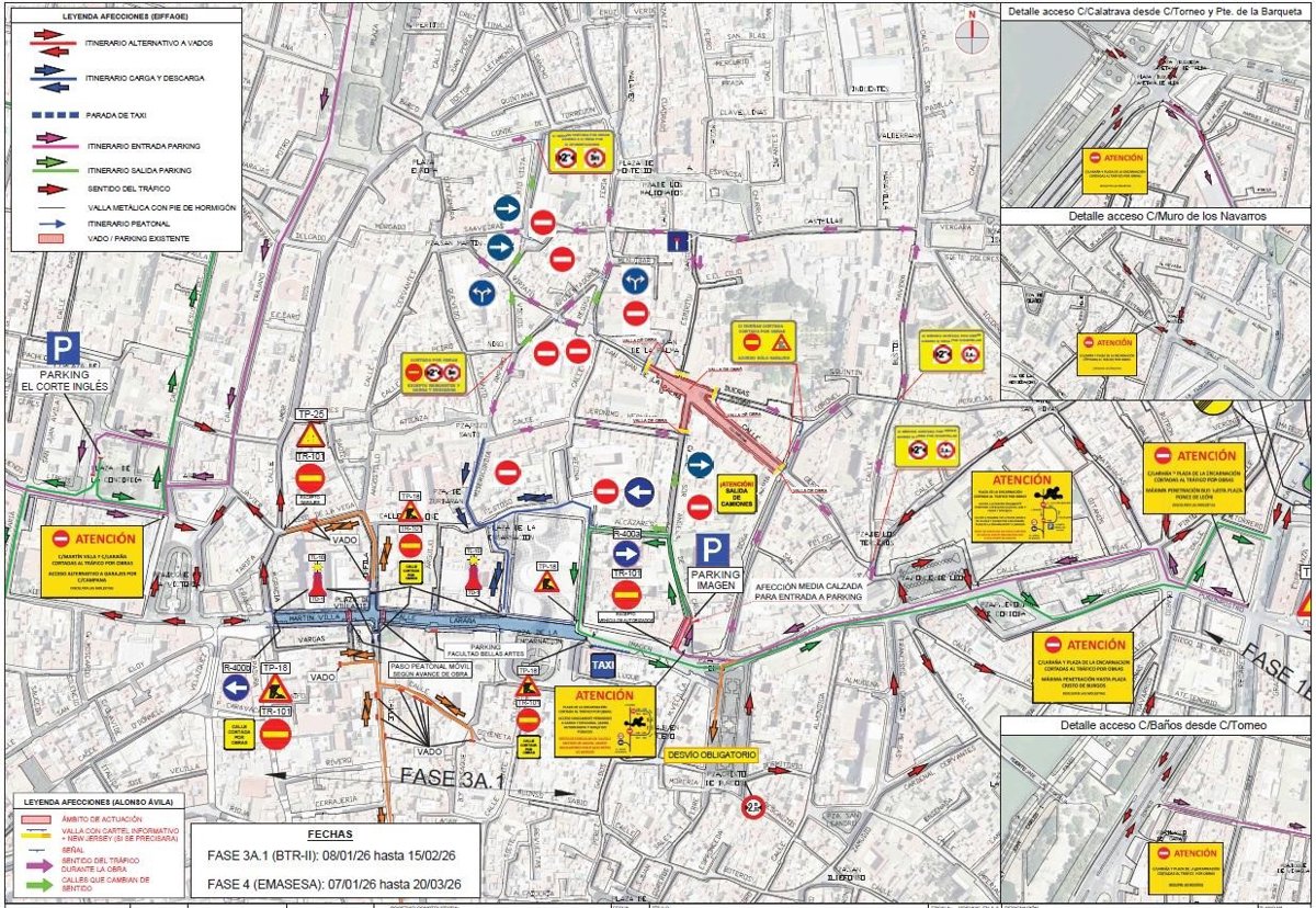 Por otro lado, el acceso a la Plaza de la Encarnación para carga y descarga se realizará por Santa Ángela de la Cruz y Alcázares, que cambian de sentido en consecuencia.