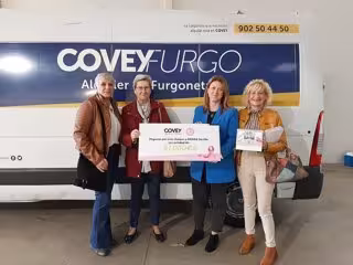 Covey, una de las empresas más importantes a nivel nacional en alquiler de vehículos industriales, ha hecho entrega a Amama de un cheque con lo recaudado en quince días y ha vestido de rosa sus distintas redes sociales y su web.