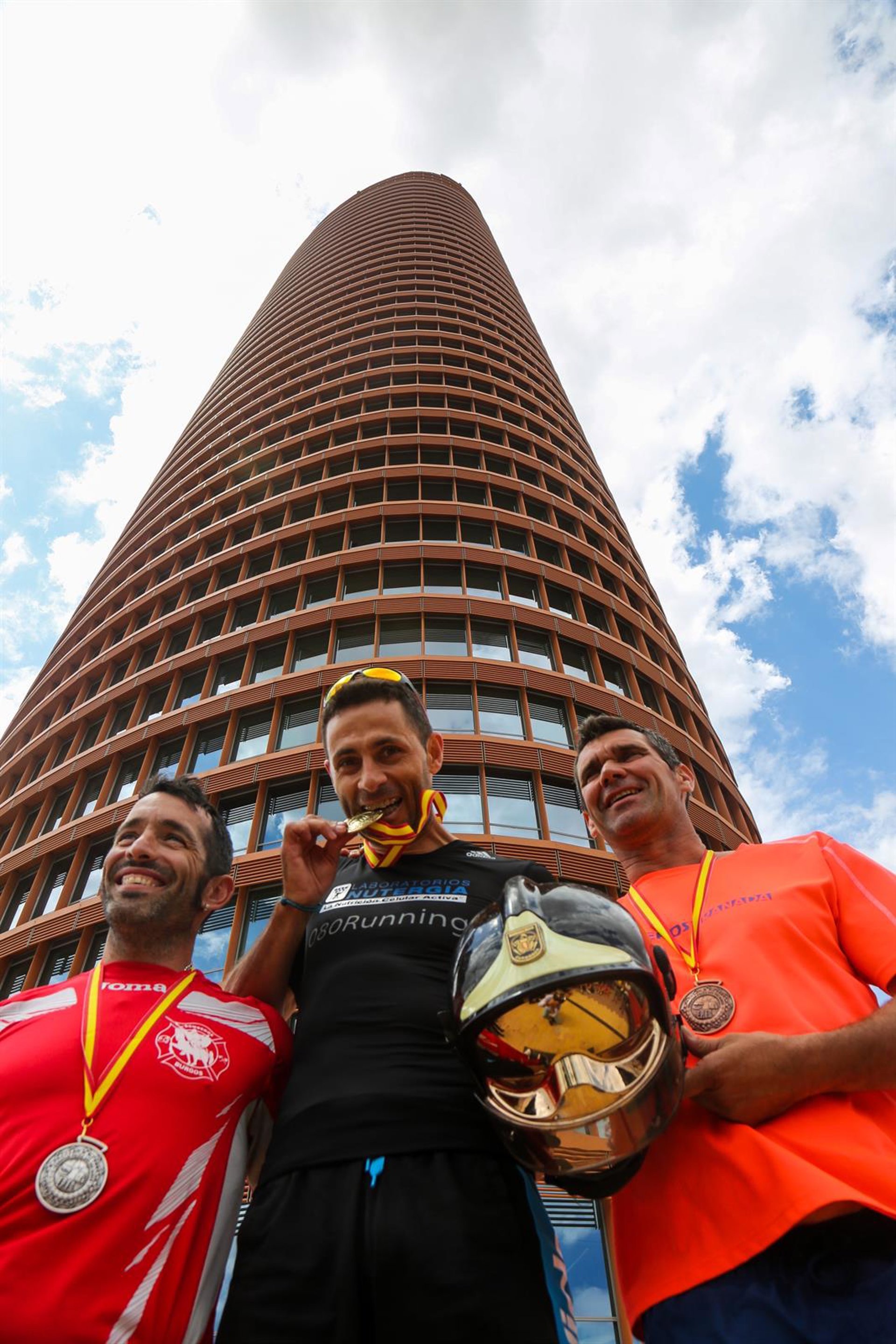 La Torre Sevilla ha acogido este miércoles una cronoescalada deportiva que ha puesto a prueba a bomberos de toda Europa, frente a los 180,5 metros del rascacielos más alto de Andalucía. La competición, que se enmarca en los VI Juegos Europeos de Policías y Bomberos 2016 de Huelva, se ha desarrollado bajo una gran expectación de curiosos y medios de comunicación por el debut de Torre Sevilla en el campeonato.